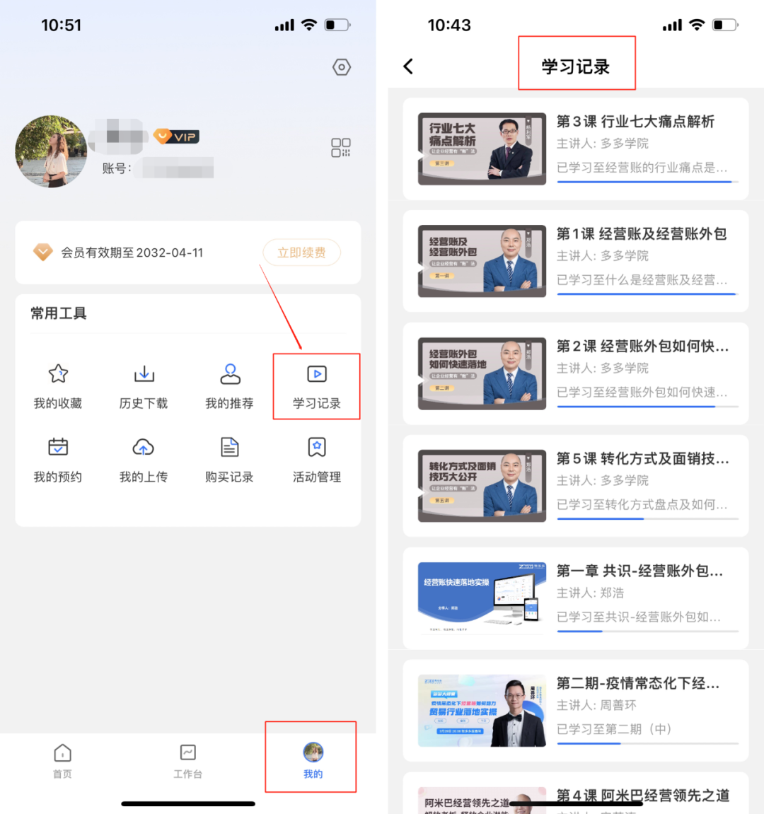 所有的學(xué)習(xí)記錄,可以在【我的-學(xué)習(xí)記錄】中查看到: