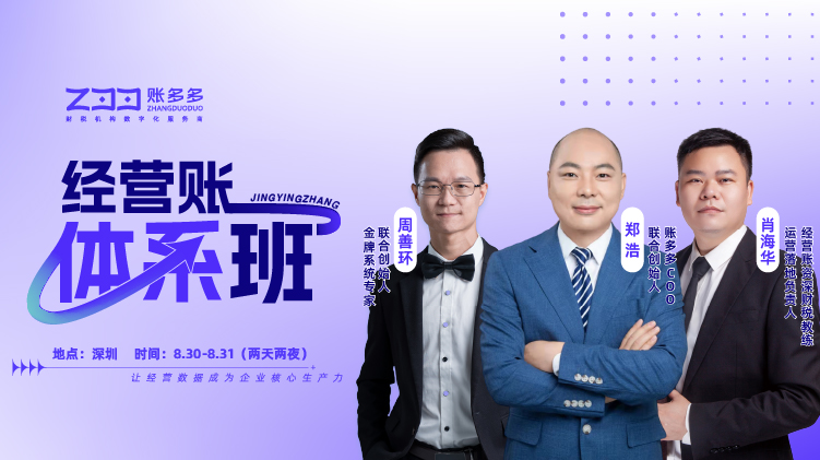 體系班將由賬多多COO、聯合創始人鄭浩老師,賬多多金牌系統專家、聯合創始人周善環老師,賬多多經營賬資深財稅教練、運營落地負責人肖海華老師擔任主講老師,圍繞賬多多經營賬體系展開深入介紹,從宏觀背景、頂層設計到實戰演練、落地執行,讓每一位學員實質性地提升認知、加強能力、快速落地!