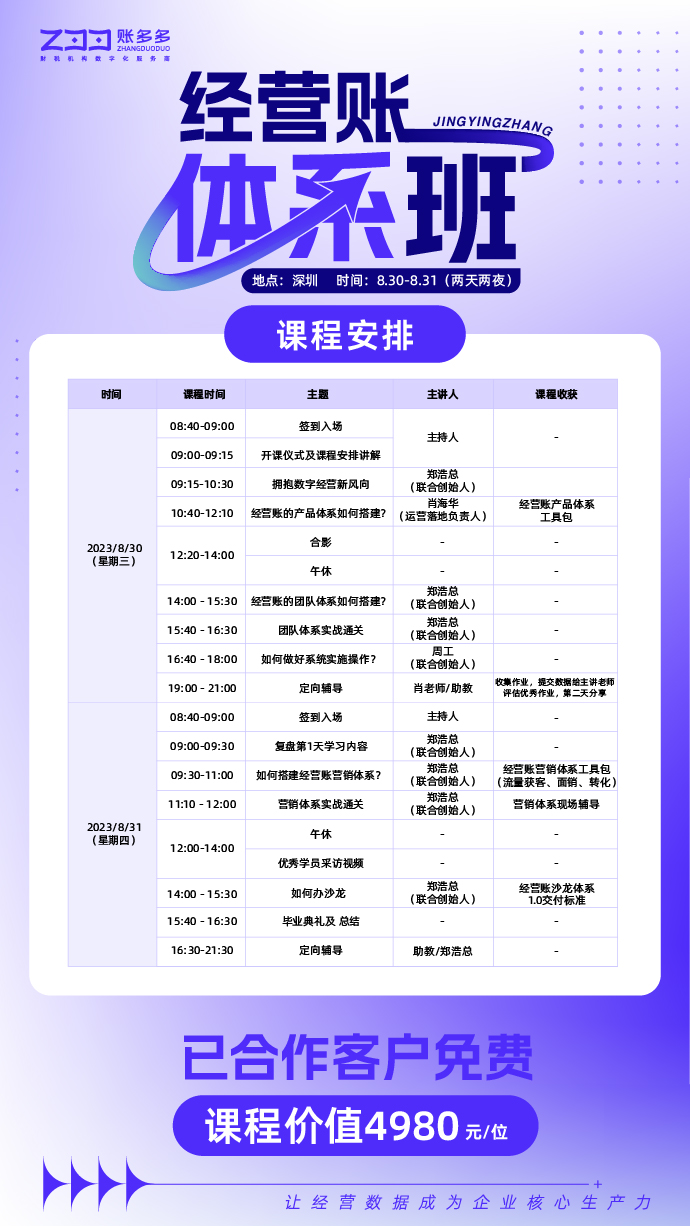 體系班課程價值4980元,賬多多已合作客戶與專屬顧問聯系可享免費學習權益。