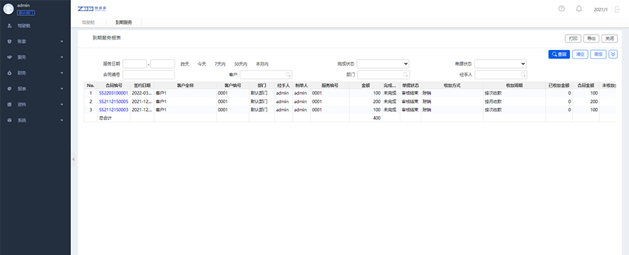 到期日期提醒,提前發(fā)起合同到期通知給業(yè)務(wù)員。