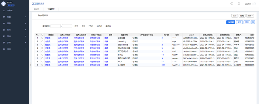 所有客戶的經(jīng)營(yíng)管控創(chuàng)建賬套/增加用戶/續(xù)費(fèi)。