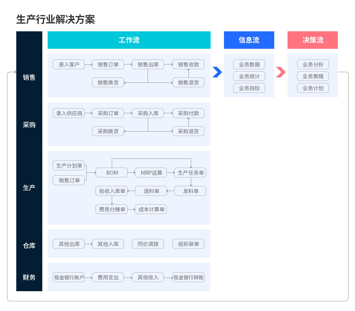 解決積壓物料缺乏即時數據、物料存放無序、往來款核算不清晰、資金流管理能力偏弱、供應鏈能力效率整體低下等問題;